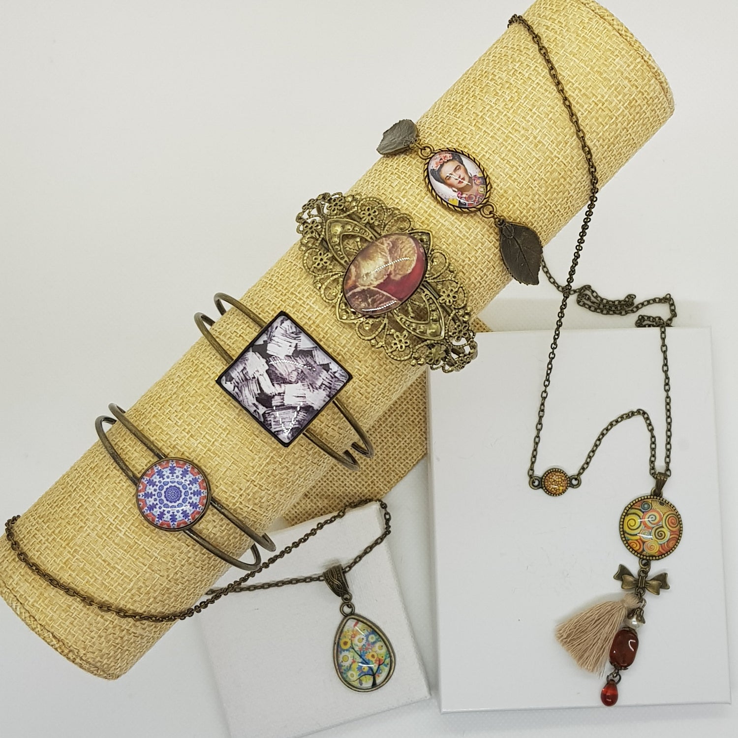 "Bronze, Argent, Doré ou encore Bois & Acier, Découvrez mes créations artisanales et personnalisables de bijoux à cabochon."