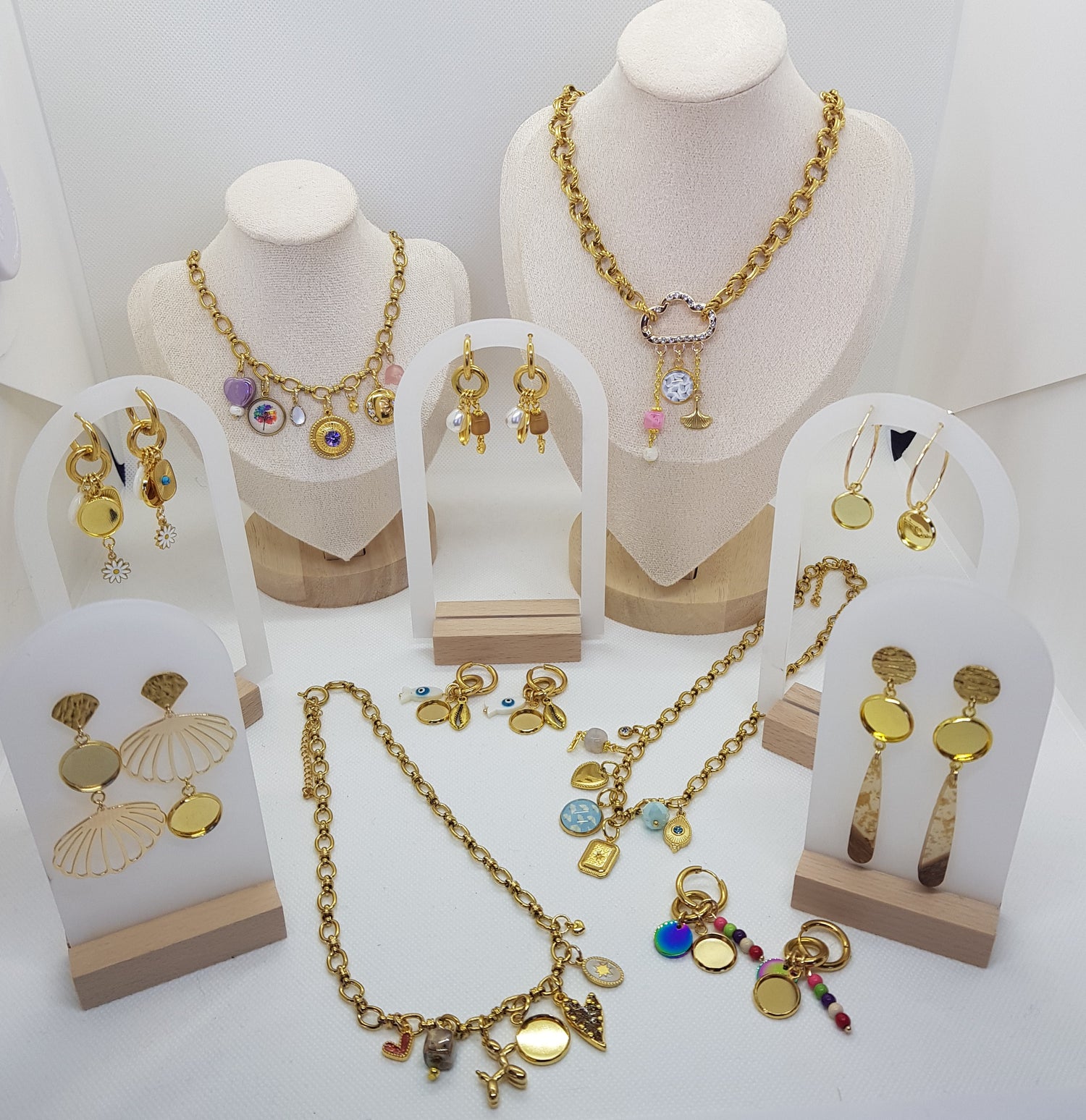 L'ensemble de nos Bijoux sont réalisés avec des éléments personnalisables, comme les Pompons, Breloques ou les Cabochons.
