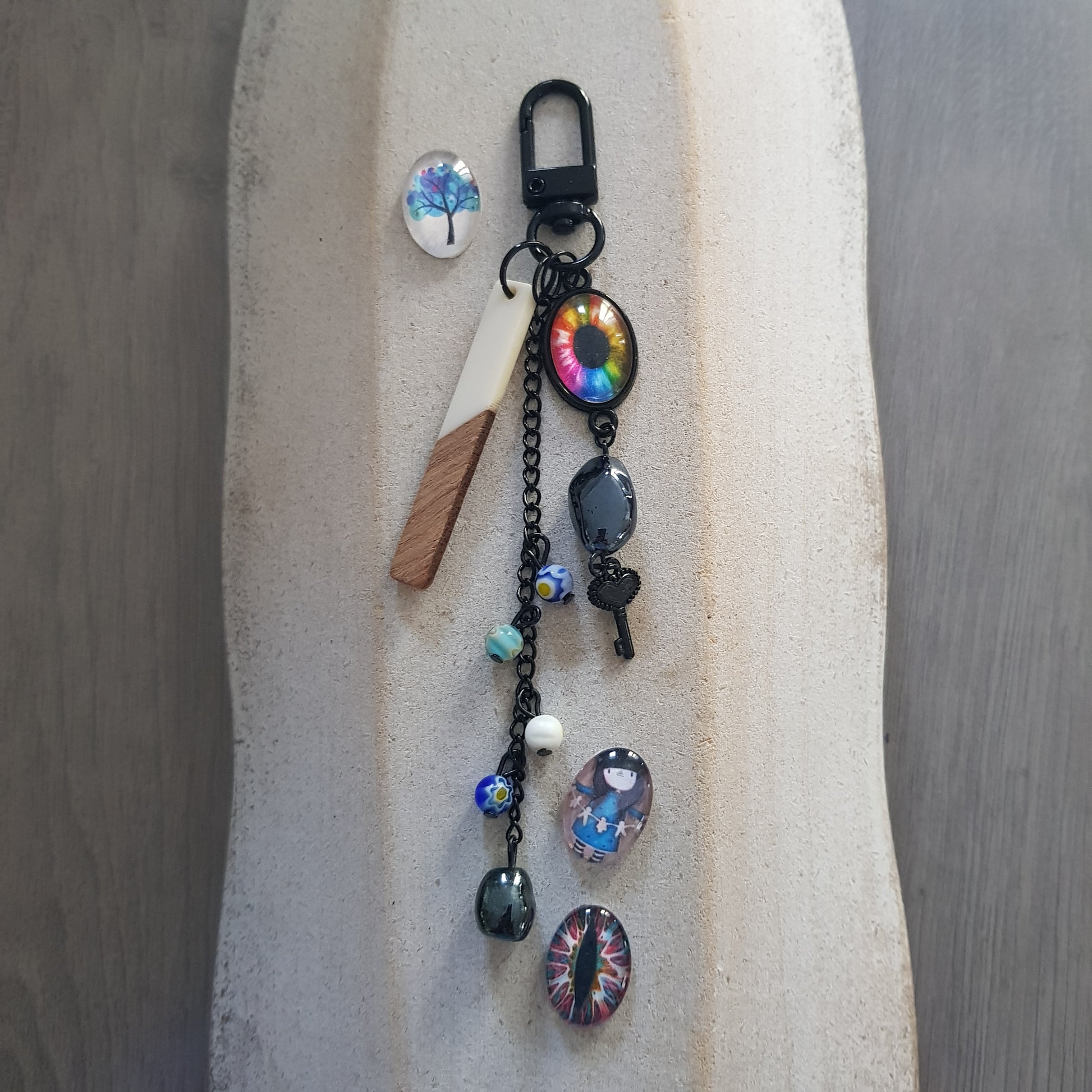 Porte-clés vintage, Bijou de sac en cuivre coloré noir fait main.