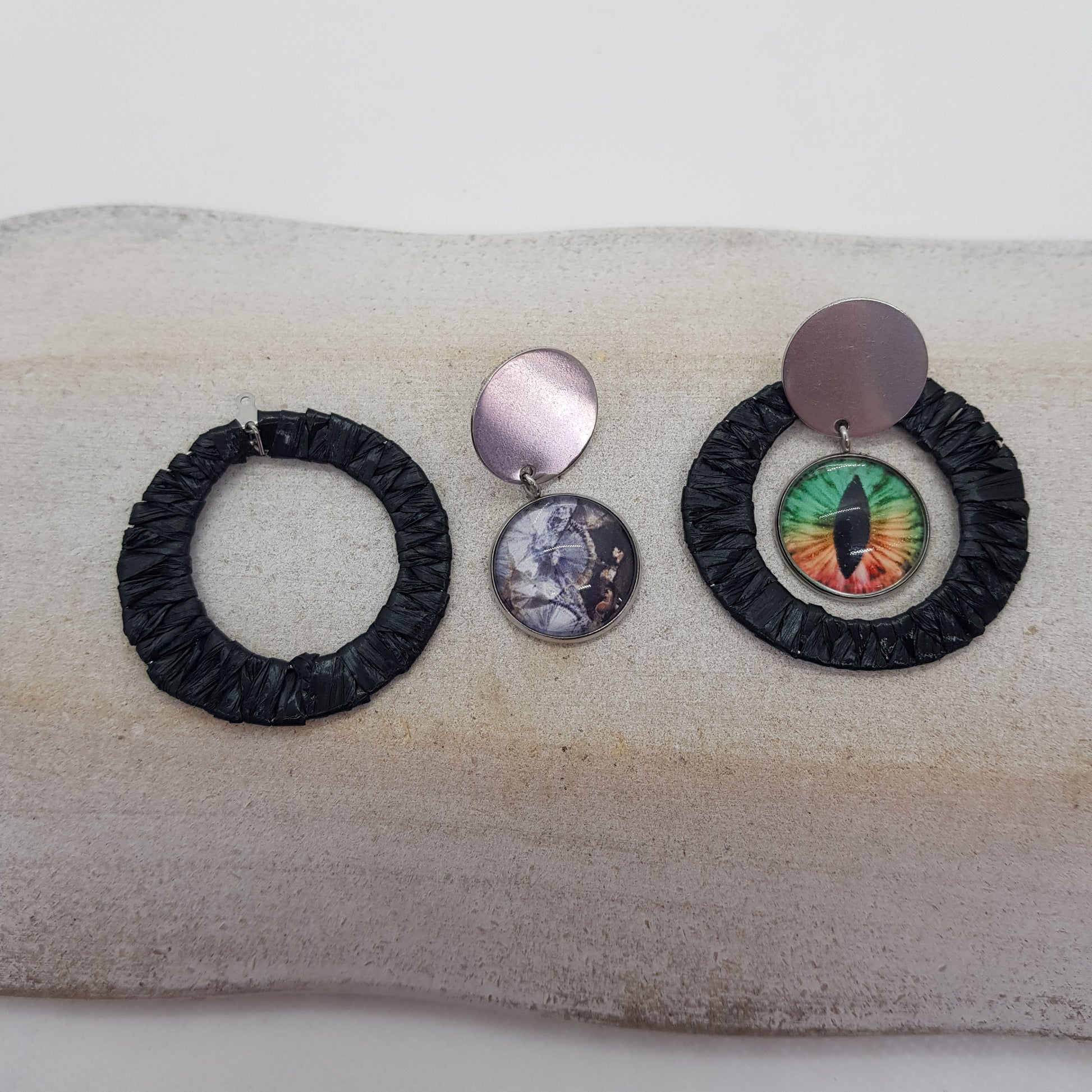 Boucle d'Oreille Artisanale Créole 2-en-1 Raphia Noir