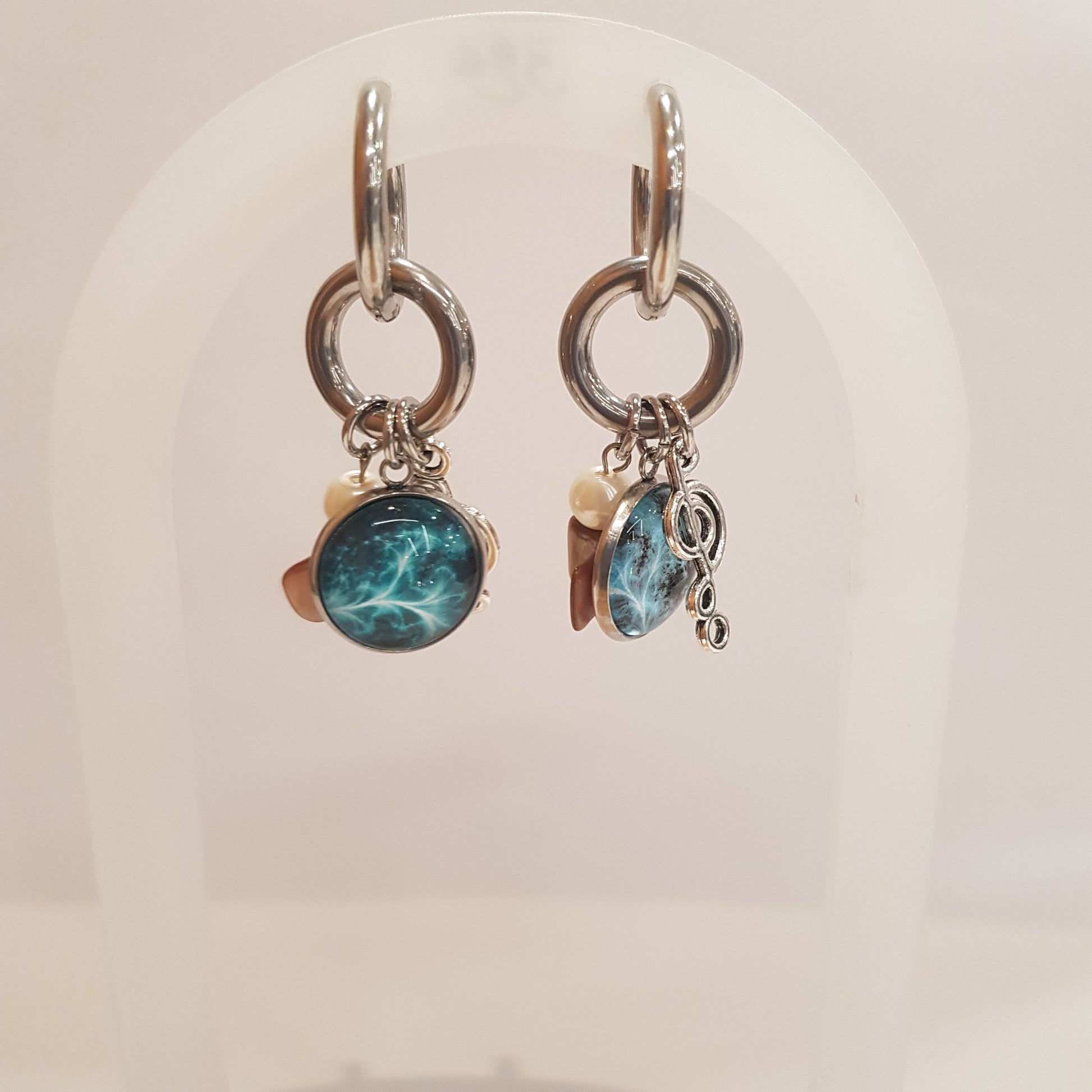 Laissez vous séduire par nos boucles d'oreille , une création avec une touche de musique accompagnées de ses perles nacrées.