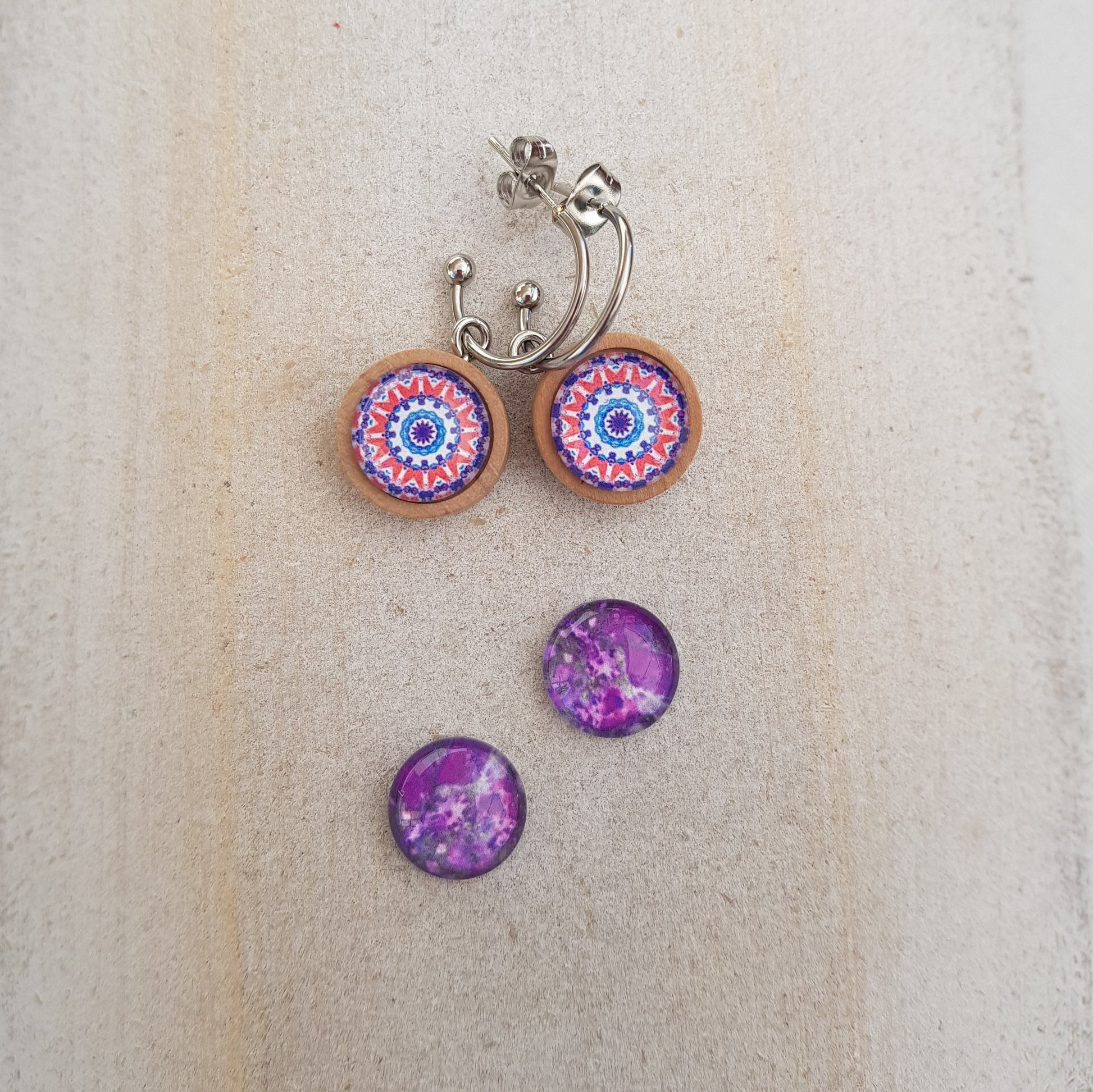 J'adore ces boucles d'oreilles plus minimalistes qui mettent en valeur les illustrations colorées, tout en étant sobres grâce aux différentes teintes du bois.