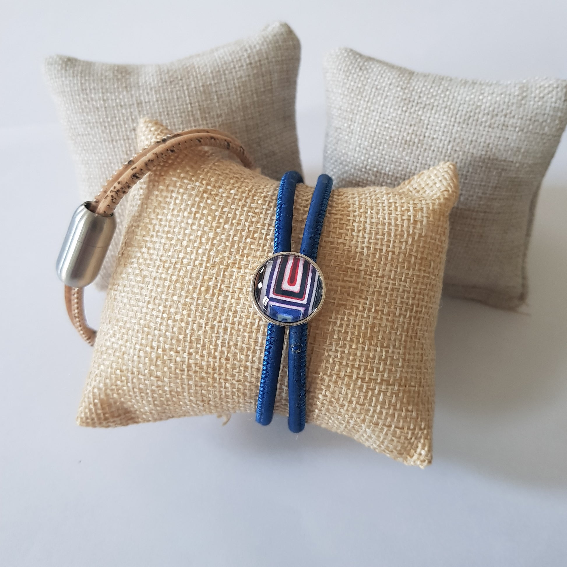 Bracelet Artisanal Danaé Liège Bleu Roi Argent
