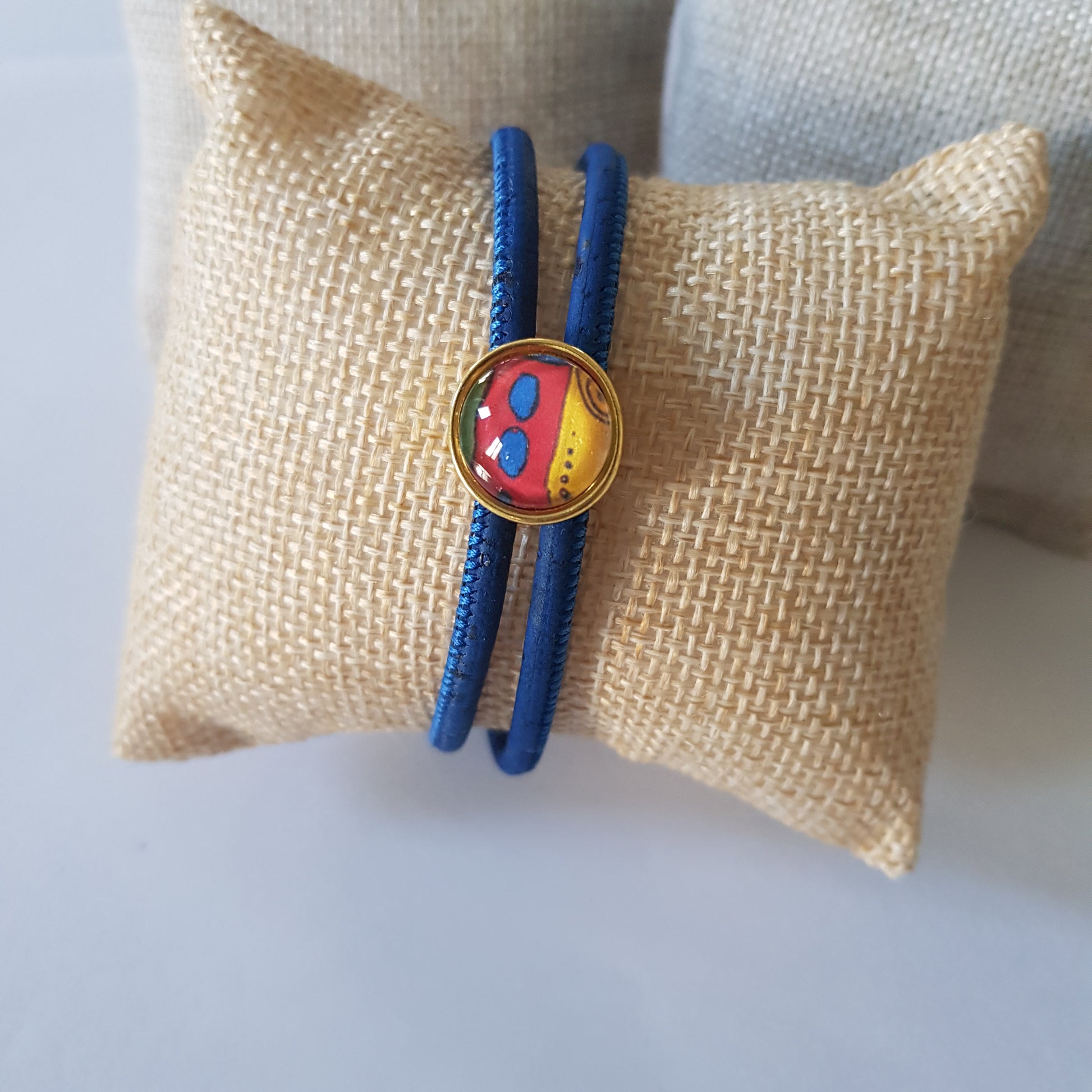 Bracelet Artisanal Danaé Liège Bleu Roi Doré