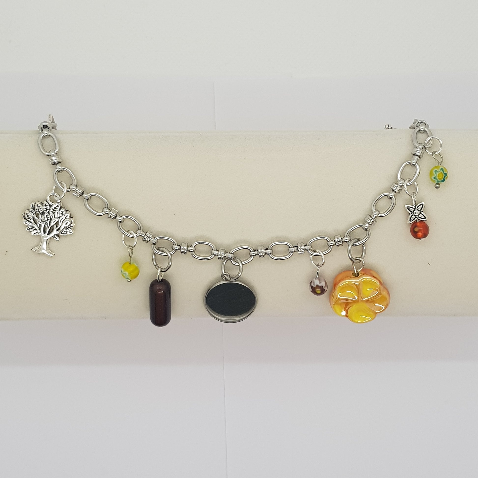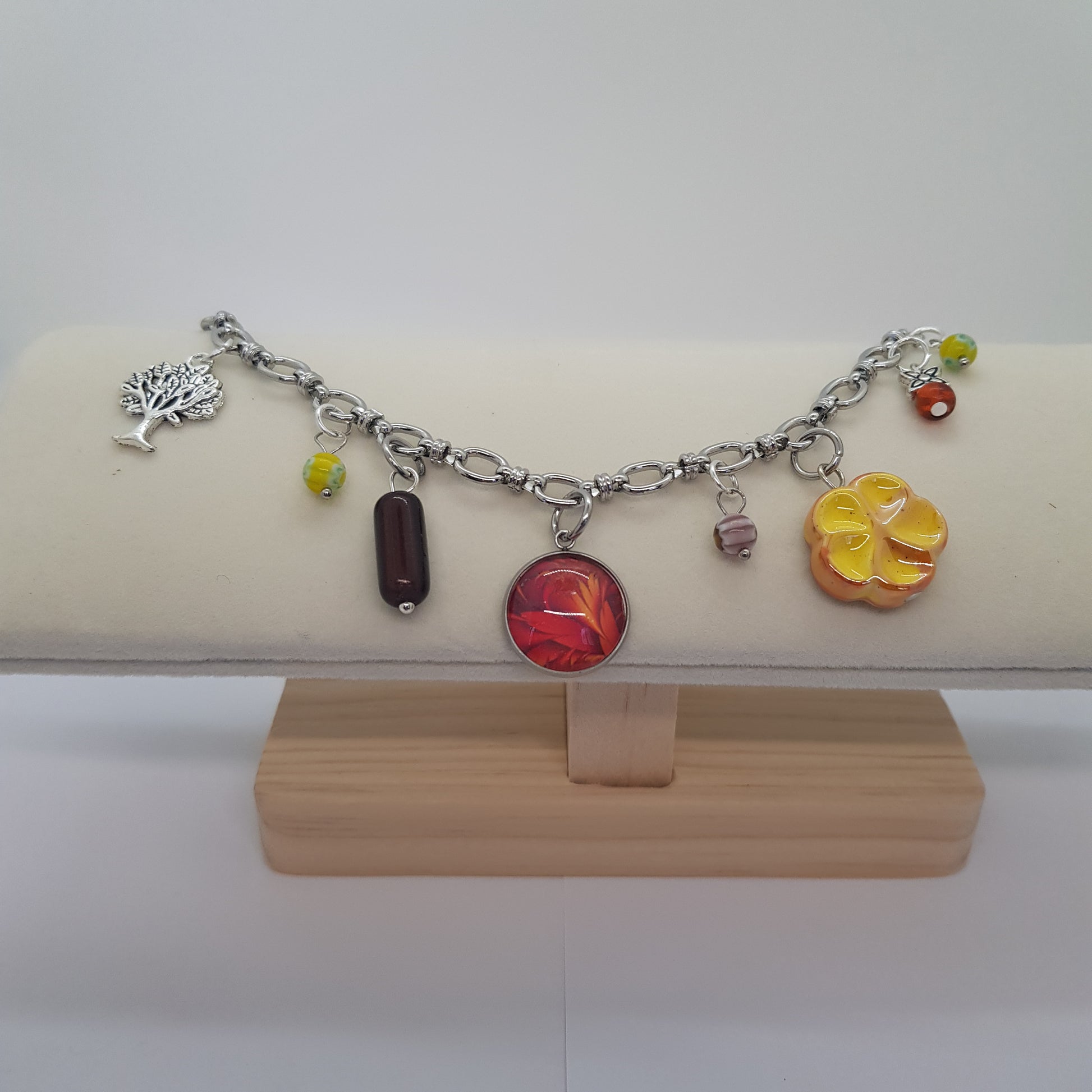 Pour la personnalisation de ce modèle, j'ai opté pour le motif n° 6, thème Modern Art, en ajoutant des charms aux tons chauds et une breloque arbre de vie.