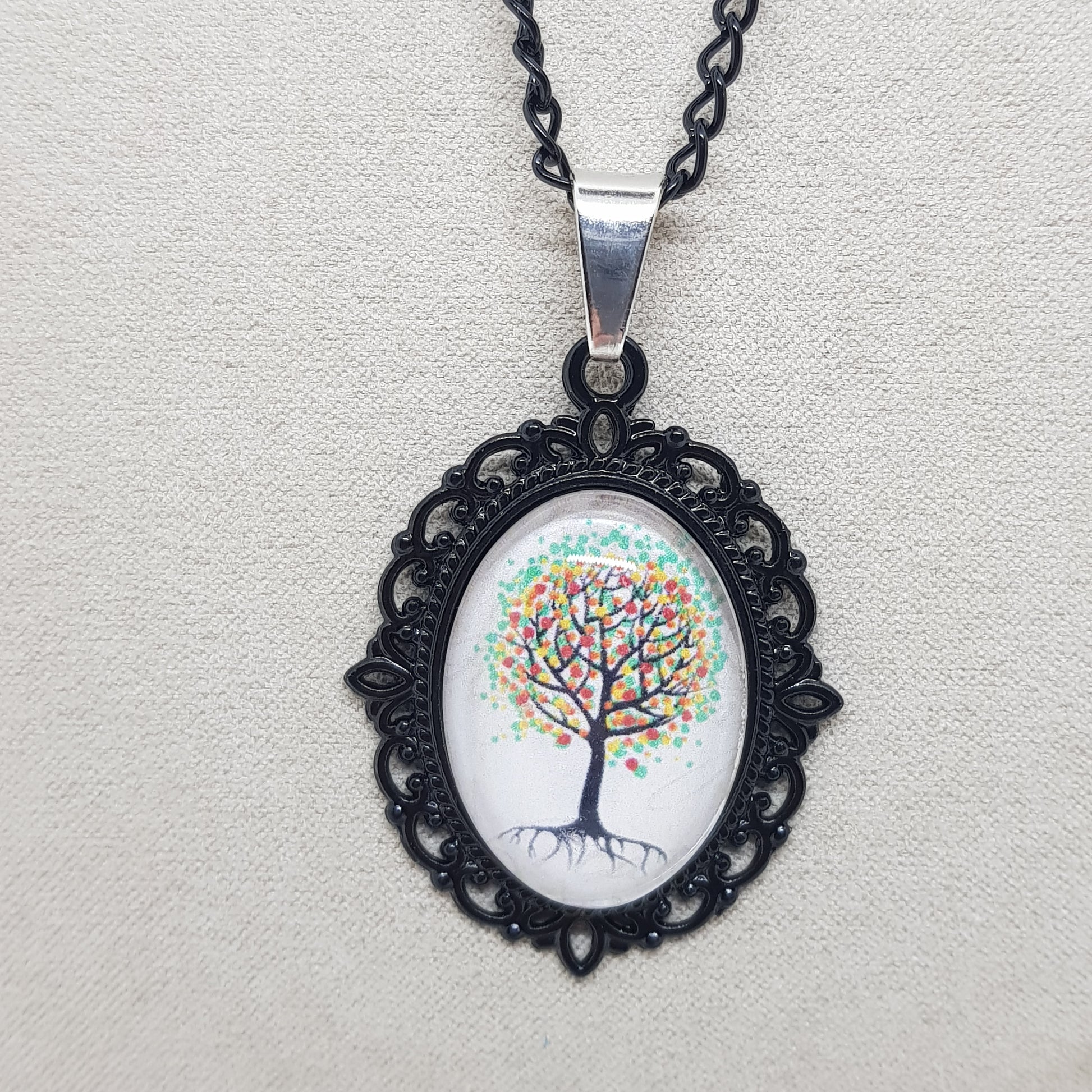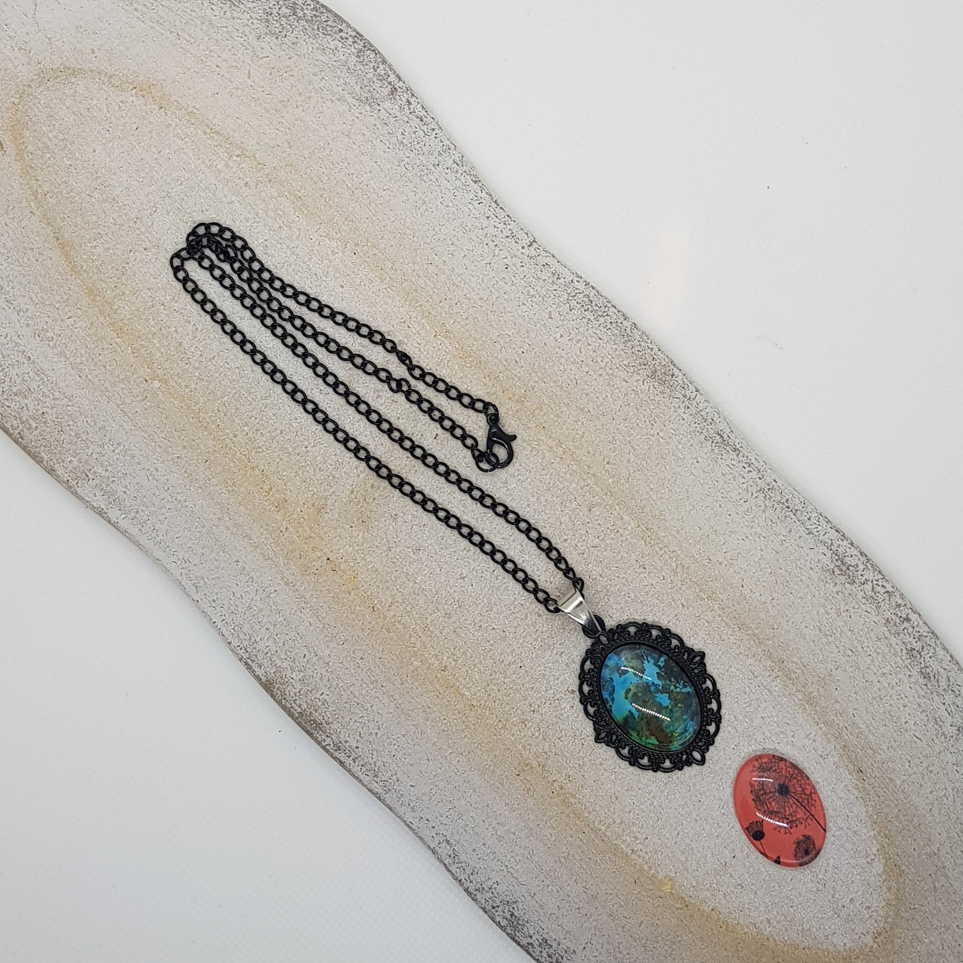 Collier ras du cou avec pendentif baroque ovale et son cabochon à personnaliser monté sur une chaîne en métal noir fabriqué dans mon atelier.