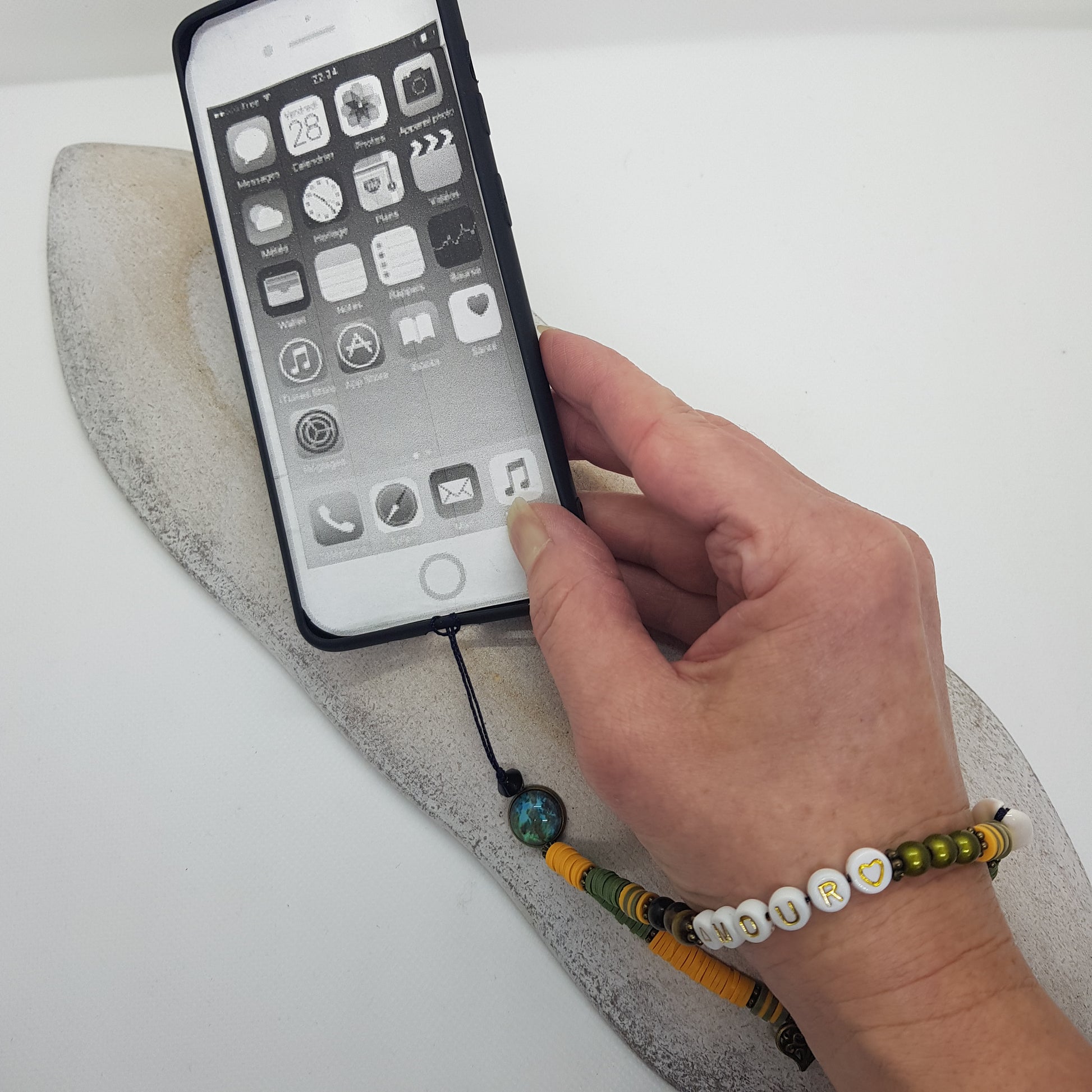 Notre dragonne de téléphone personnalisée AMOUR s’attache à votre coque de téléphone afin de le porter élégamment.